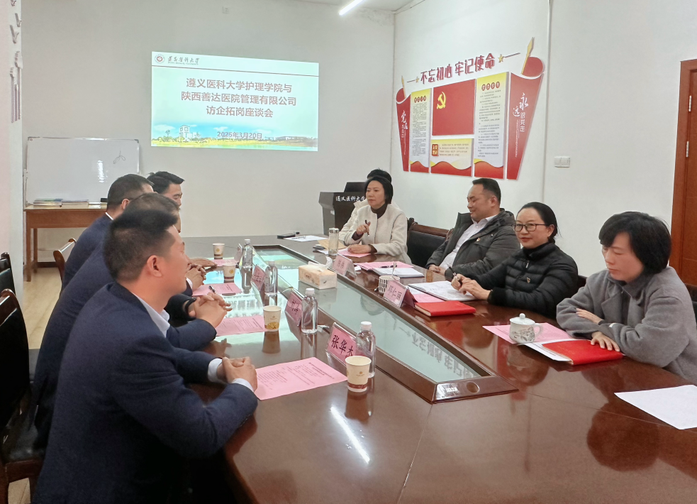3月20日上午10:30,betway西汉姆与陕西善达医院管理有限公司在大连路校区荣殿楼7楼会议室举行“访企拓岗促就业”校企合作座谈会。学院党委副书记、院长邓仁丽,党委副书记陈伟,党委委员、副院长王连红及毕业年级老师参会。座谈会由陈伟副书记主持。