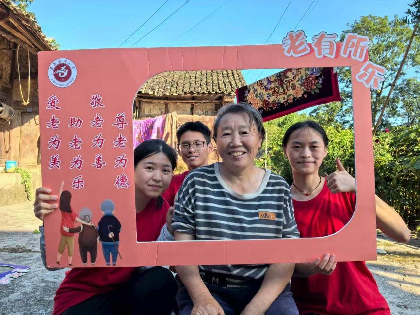 留影时光,岁月铭记。学生们与老人一同拍摄 “呆萌” 照片,捕捉老人劳作、晒太阳、散步等生活瞬间,记录下老人的 “可爱” 与精彩。这些照片经后期冲洗后,将赠予老人留作纪念。在征得老人同意后,队员们还会把与老人交流的小故事整理出来,搭配照片,制作成图文集《桑榆美》,让这些温暖的瞬间得以永久保存,成为老人和队员们共同的美好回忆。