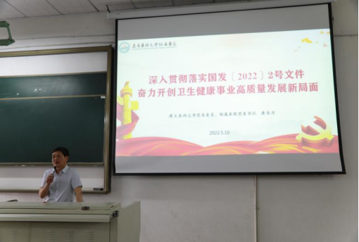 随后,唐自力书记对贵州省第十三次党代会的会议精神与师生进行了传达学习,就《围绕“四新”主攻“四化”全力推动高质量发展》给师生进行了全面深入的讲解。并对同学们提出几点希望:一是希望同学们在老师的关心关怀下,在自身努力下,能够学有所成,更上一层楼;二是希望同学们要抢抓新时代贵州发展新机遇,练就过硬临床技能,更好地服务贵州下一个黄金十年;三是希望同学们树立家国情怀,不负时代,不负韶华,不负党和人民的殷切期望,在贵州发展新的长征路上画上浓墨重彩的一笔!