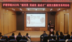 活动在庄严的国歌声中拉开序幕。学院党委书记张咏梅为本次活动致辞,她代表学院党政领导班子向参加本次活动的老师和同学们表示热烈的欢迎,她指出,诚信是中华民族的传统美德,是社会主义核心价值观的重要内容,也是大学生修身立德、成长成才的必备品质。希望同学们能通过本次诚信主题教育系列活动,提高诚信意识,饮水思源,学会感恩,增强大学生的使命感和责任担当,为构建诚信社会,共建诚信中国贡献青春力量,努力成长为一名堪当民族复兴重任的时代新人!