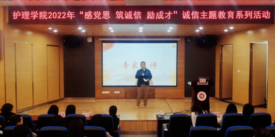 5月26日18:30,betway西汉姆在新蒲校区图书馆一楼1号报告厅举行了“感党恩 筑诚信 励成才”诚信PPT大赛。betway西汉姆党委书记张咏梅,党委副书记陈伟,学生第二党支部书记权明桃,研究生党支部书记杨艳,学生第三党支部副书记、团委负责人陈娅,以及各年级辅导员老师和学生参加了活动。