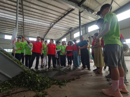 走进茶园,在茶农的指导和示范下,师生们认真领会采摘技巧和要领,随即变身“茶农”投入到采摘的劳动中。同学们手挎竹篮在茶园里穿梭忙碌,一片片嫩绿的茶叶迅速装满了竹篮。采茶现场,学生们化身“销售员”,同杜富佳书记一起走进直播间,助力现场直播带货,生动活波的直播方式吸引了大量网友观看,并成功将线上流量转换为了线下的销售量。在杜富佳书记的陪同下,师生们参观了当地的茶厂,茶厂负责人从制茶流程、制茶工艺、经营情况等方面给大家作了详细讲解,让大家对茶产业有了更深入的了解。同时,学院党委书记张咏梅,党委副书记、院长邓仁丽结合学科,就大学生创新创业课题拓展与企业负责人进行交流。