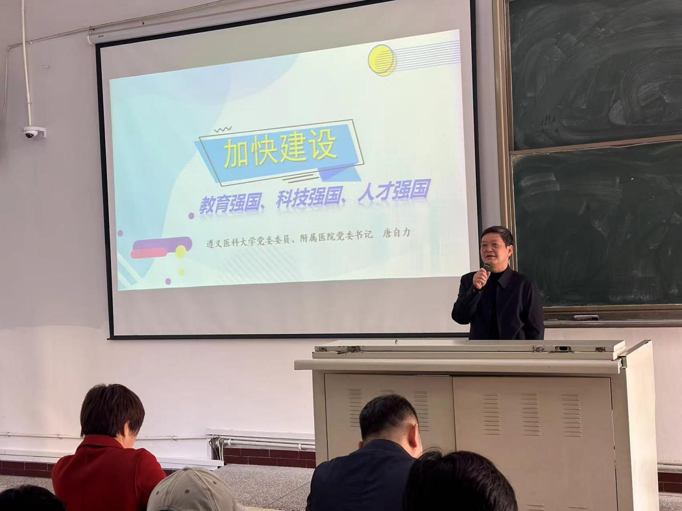 唐自力强调,党的二十大报告第一次将教育、科技、人才整合到一起系统谋划,是新时代新征程国家发展的客观需要。经过七十几年的发展,我国教育、科技、人才事业已经取得历史性成就、发生历史性变革。在此背景下,国家要充分发挥高等教育的重要支撑作用,持续增强科研创新能力,服务国家战略需求和区域经济社会发展,全力培养堪当民族复兴大任的时代新人。最后,唐自力勉励同学们要坚持理论与实践相结合,注重在实践中求真知、悟真谛、加强磨炼、增长本领;要学习专业知识、夯实护理专业人文素养;要自信自强、踔厉奋发、勇毅前行、以深厚的家国情怀,把小我融入时代发展洪流的大我之中。
