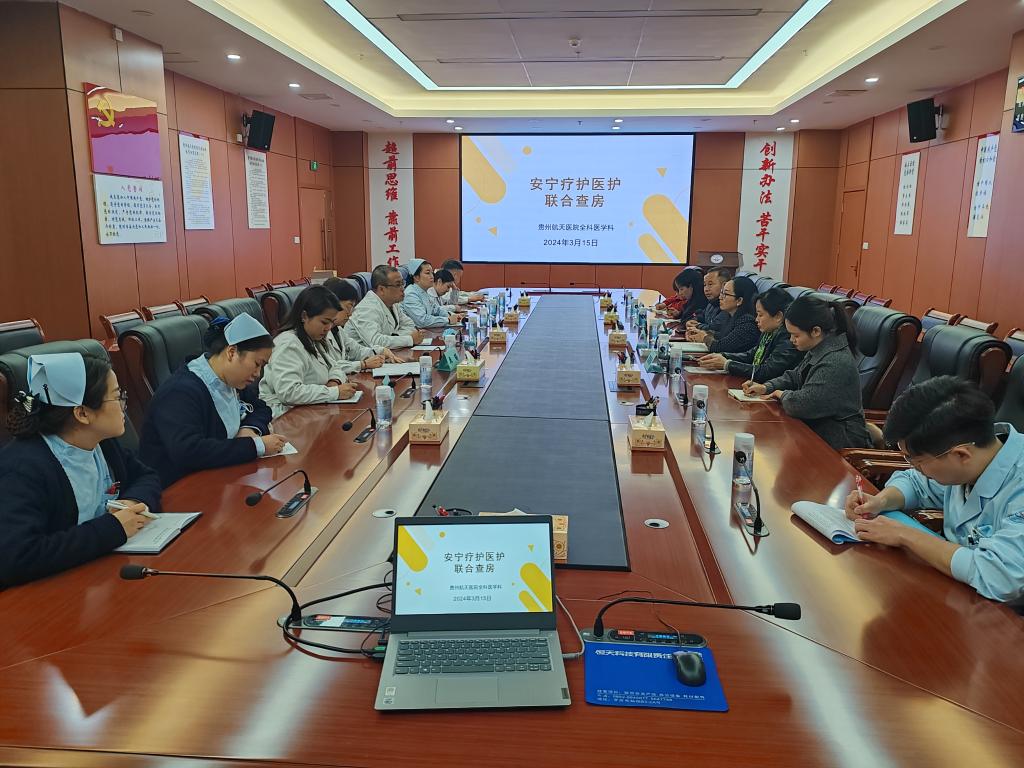 随着我国人口老龄化进程的加速,遵义市养老服务在国家一系列政策的推动下正在以积极健康的态势稳定发展。2024年3月15日下午,在遵义市卫生健康局组织下,由betway西汉姆院长、遵义市安宁疗护核心工作组组长邓仁丽牵头,遵义市安宁疗护多院联合查房在贵州航天医院全科医学科举行,来至pbw必威西汉姆联附属医院、遵义市中医院等多院多学科核心工作组成员参加会议,会议由贵州航天医院全科医学科主任陈琪主持。