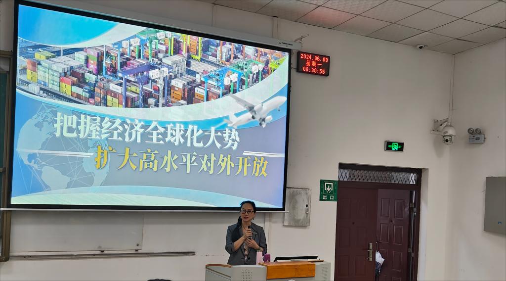 党委副书记、院长邓仁丽走进学院2022级护理1-4班课堂,以“把握经济全球化大势 扩大高水平对外开放”为题,从“不可阻挡的历史潮流”“破解困局的中国方案”“繁荣发展的必由之路”三个方面给学生作了讲解。她强调,扩大高水平对外开放,推动经济全球化向前发展,是对人民好、对中国好、对世界好的大事业。同学们应树立全球化意识,增强对外交流本领,为推动经济全球化向前发展贡献青春力量。