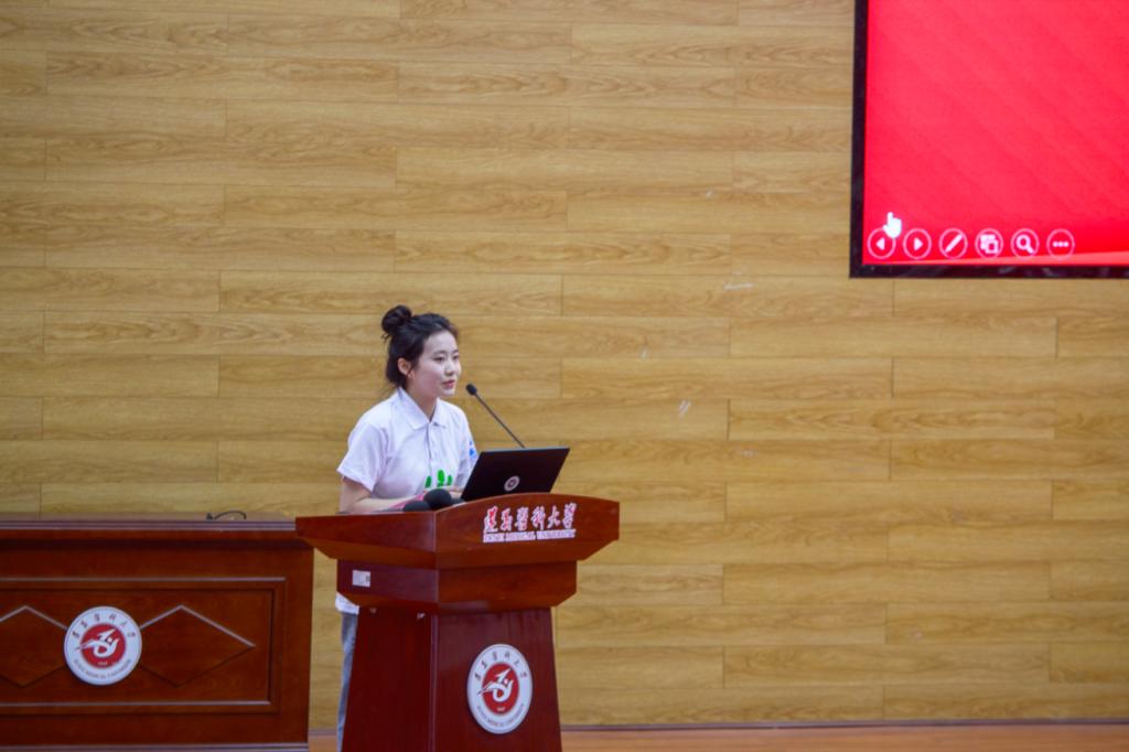 树立远大理想,争做时代新人。大会在庄严的国歌声中拉开序幕。2024级新生代表张元佳上台发言,号召同学们当勇立潮头,在新时代新征程上,迸发青春生机,生发青春力量,坚定不移听党话、跟党走,用青春书写时代赋予的责任与担当。随后,邓静怡、李晓宇等七名新生代表朗诵诗歌——《托起生命的航船》,表达出了对遵医无限的热爱与赞美以及对医学伟大事业的向往与憧憬。