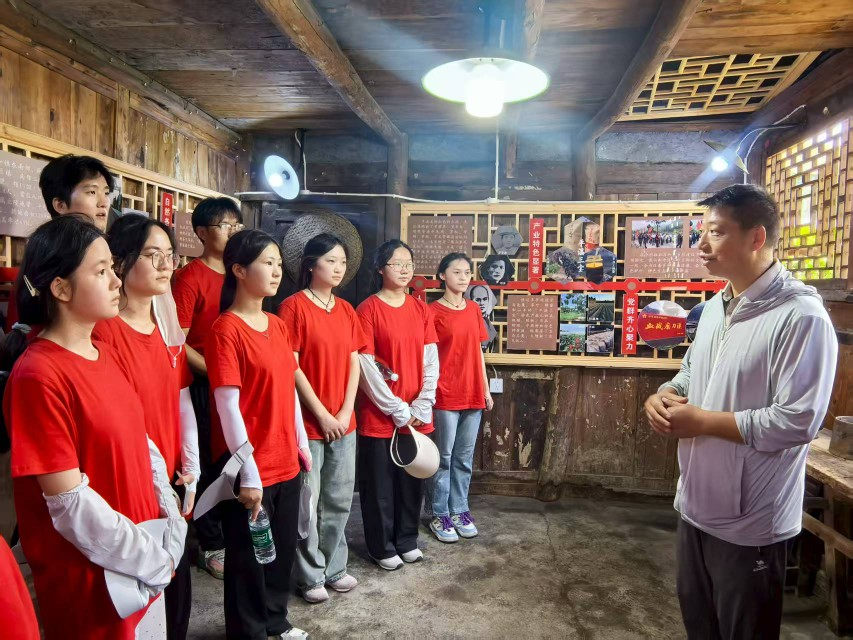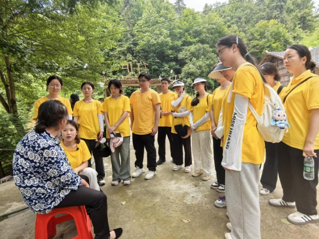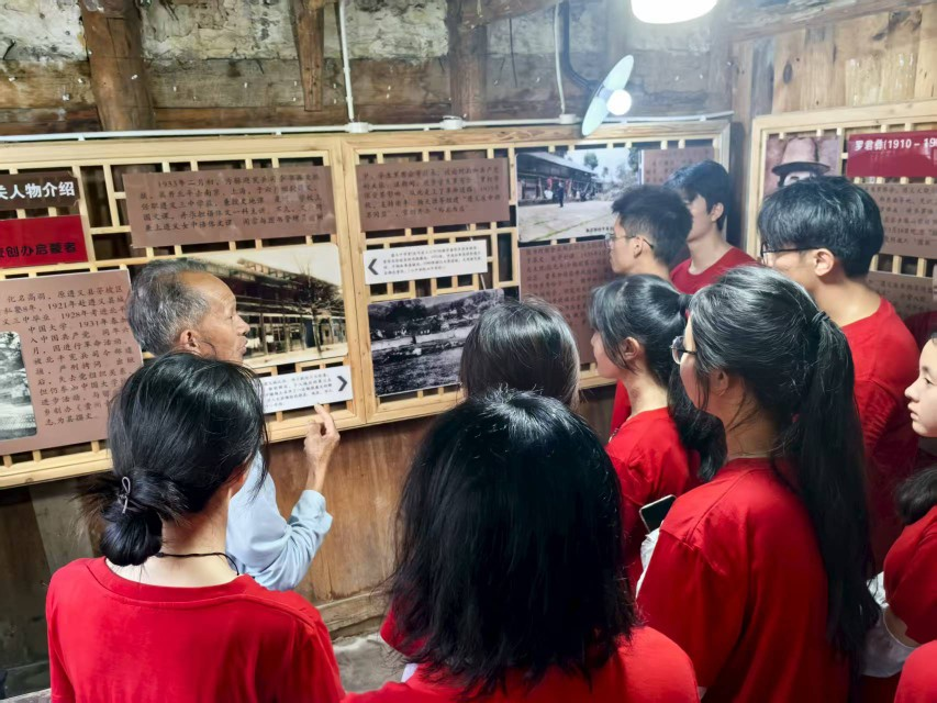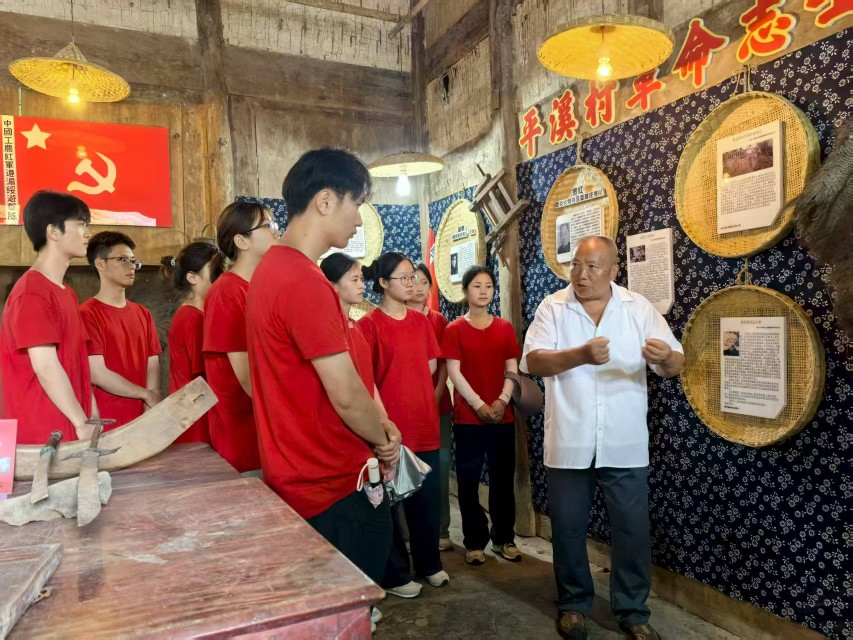 在黄勇书记的带领下,实践队师生走访了村里当年其父亲救助过红军的老人家中,聆听他们讲述其父辈安置伤病红军、提供物资支援的感人故事。在村民梁碧华家中,她向队员们讲述了其父亲冒着危险,将6名受伤的红军藏于山洞中,给他们送水、送饭、采摘草药医治红军的故事,并为大家吟诵了父亲教给她的表现红军英勇无畏的诗歌。
