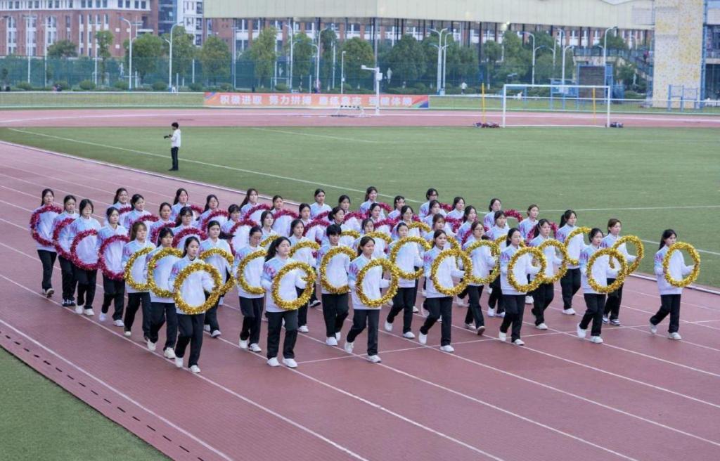 学院运动员方队迈着铿锵有力的节奏行进,整齐的队列是他们的态度;花环队手捧色彩斑斓的花环,洋溢着青春的活力;啦啦队的白裙随鼓点肆意飞扬,彩色泡泡晕染出青春的绚烂底色,在田径场上铺就成一条绮丽的星河,护理学子的严谨与运动的活力被揉成了最鲜活的青春模样!