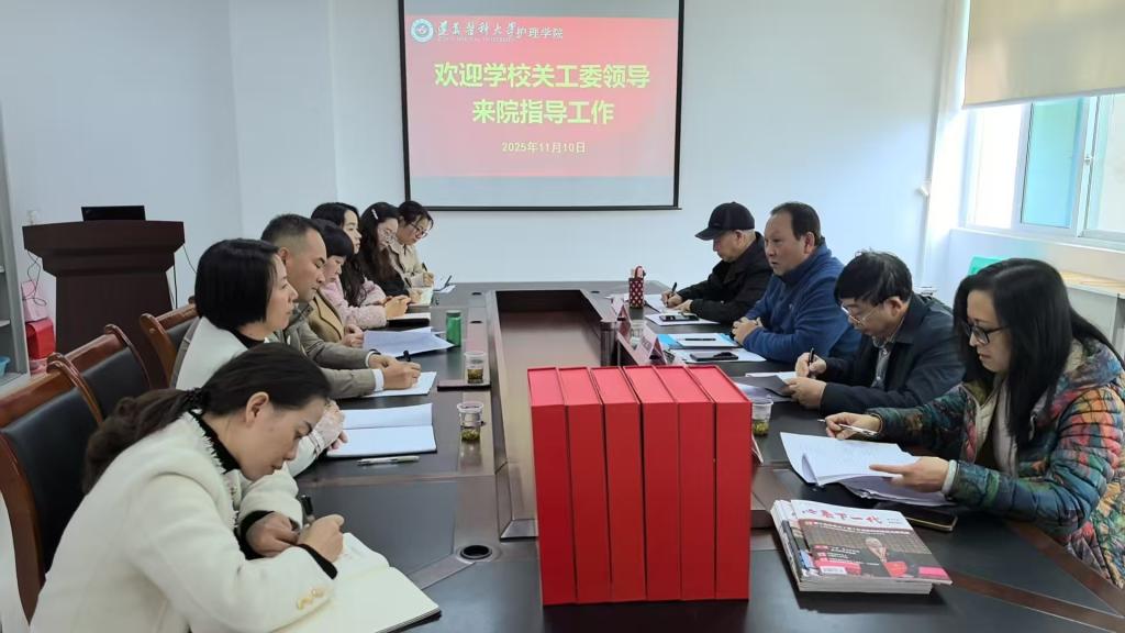 2025年11月10日,校关工委调研工作组李实明、黎宇、罗开源、滕久军、卲丽一行四人来院就“五好关工委”创建工作进行专题调研指导。学院党委副书记、关工委副主任陈伟,常务副主任谢长泉及学院关工委成员参加调研会议。