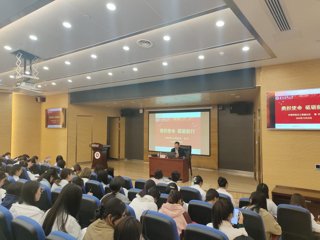 课上,黎宇老师以“勇担使命,砥砺前行”为题,用极富感染力和震撼力的语言,结合多个鲜活的事例,分别从理想与现实、信仰与信念、使命与责任、学习与实践以及中国共产党的光辉历程等五个方面给青年学生作了详细讲解。声情并茂、精彩生动地阐释了青年学生“勇担使命”的重要性和必要性,并鼓励我院青年学生要深入学习党的理论知识、党史,从学习中汲取奋进力量,苦学专业知识,练就过硬本领,为全面建设社会主义现代化国家奉献青春力量。